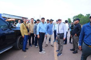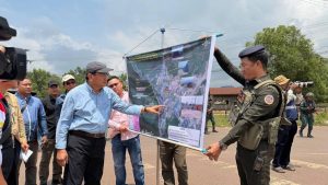 ពោធិ៍សាត់)៖ ឯកឧត្តមឧបនាយករដ្ឋមន្ត្រី ប្រាក់ សុខុន រដ្ឋមន្ត្រីក្រសួងការបរទេស និងសហប្រតិបត្តិការអន្តរជាតិ នារសៀលថ្ងៃទី២៧ ខែមីនា ឆ្នាំ២០២៦នេះ បានបង្ហាញផែនទីទឹកដីកម្ពុជានៅចំណុចច្រមុះជ្រូក (ផ្លូវបំបែកទៅកោះកុង-កាសុីណូ) ស្ថិតនៅភូមិសង្គមថ្មី ឃុំថ្មដា ស្រុកវាលវែង ខេត្តពោធិ៍សាត់ ដែលត្រូវយោធាថៃ ចូលមករាយបន្លាលួស និងដាក់ទូកុងតឺន័រ ក្រោយកិច្ចព្រមព្រៀងលើបទឈប់បាញ់ ២៧ធ្នូ ឆ្នាំ២០២៥ ដល់ឯកអគ្គរាជទូត ឯកអគ្គរដ្ឋទូត តំណាងអង្គទូត ព្រមទាំងអង្គការអន្តរជាតិធំៗ ប្រចាំកម្ពុជា។